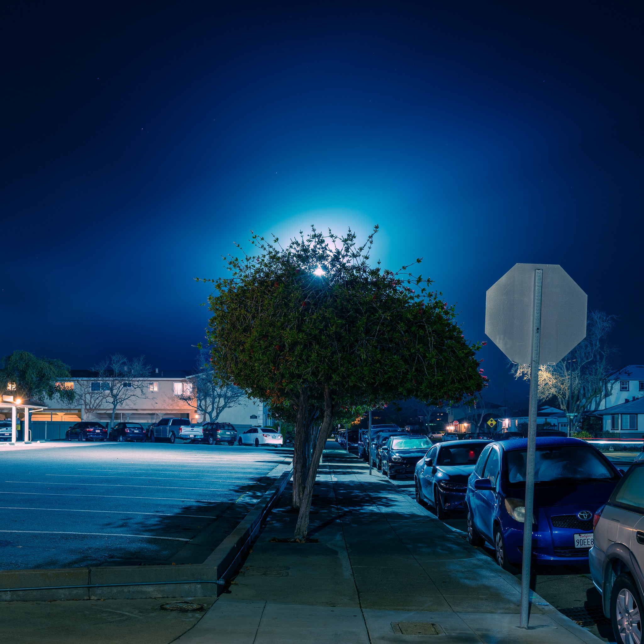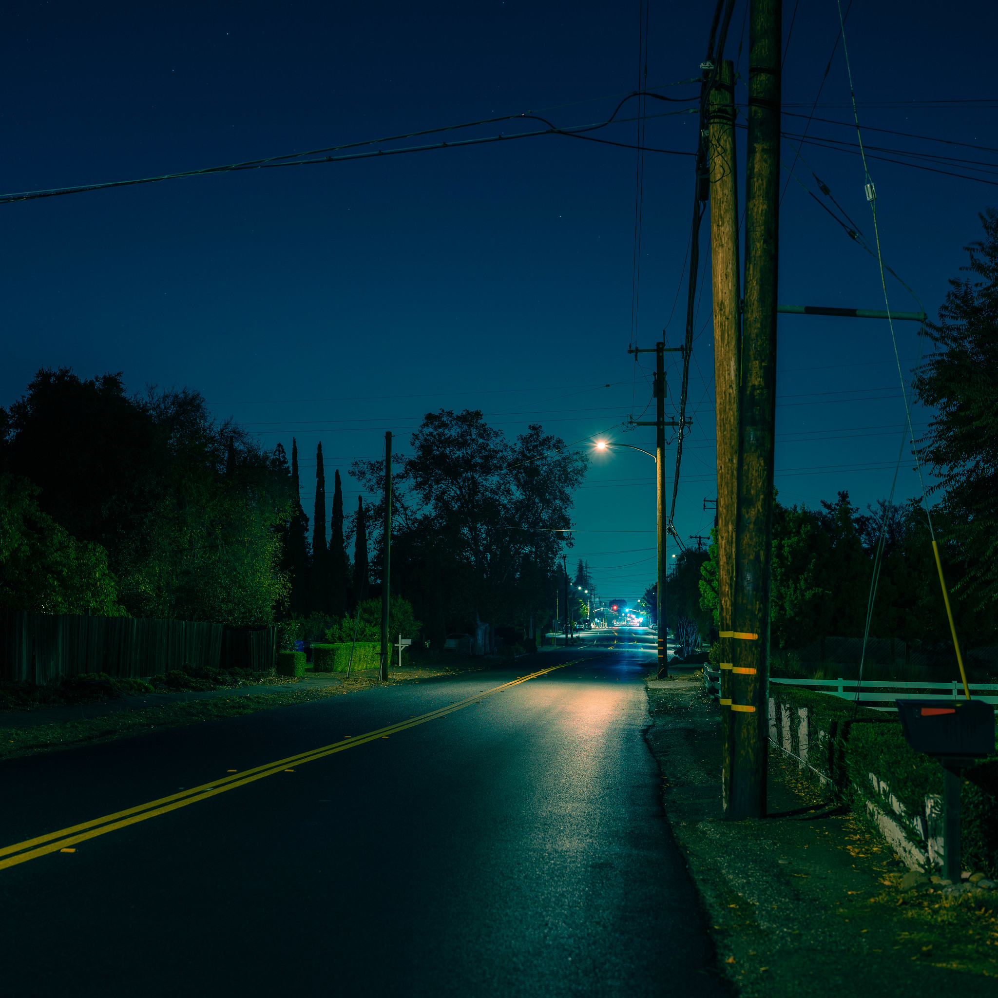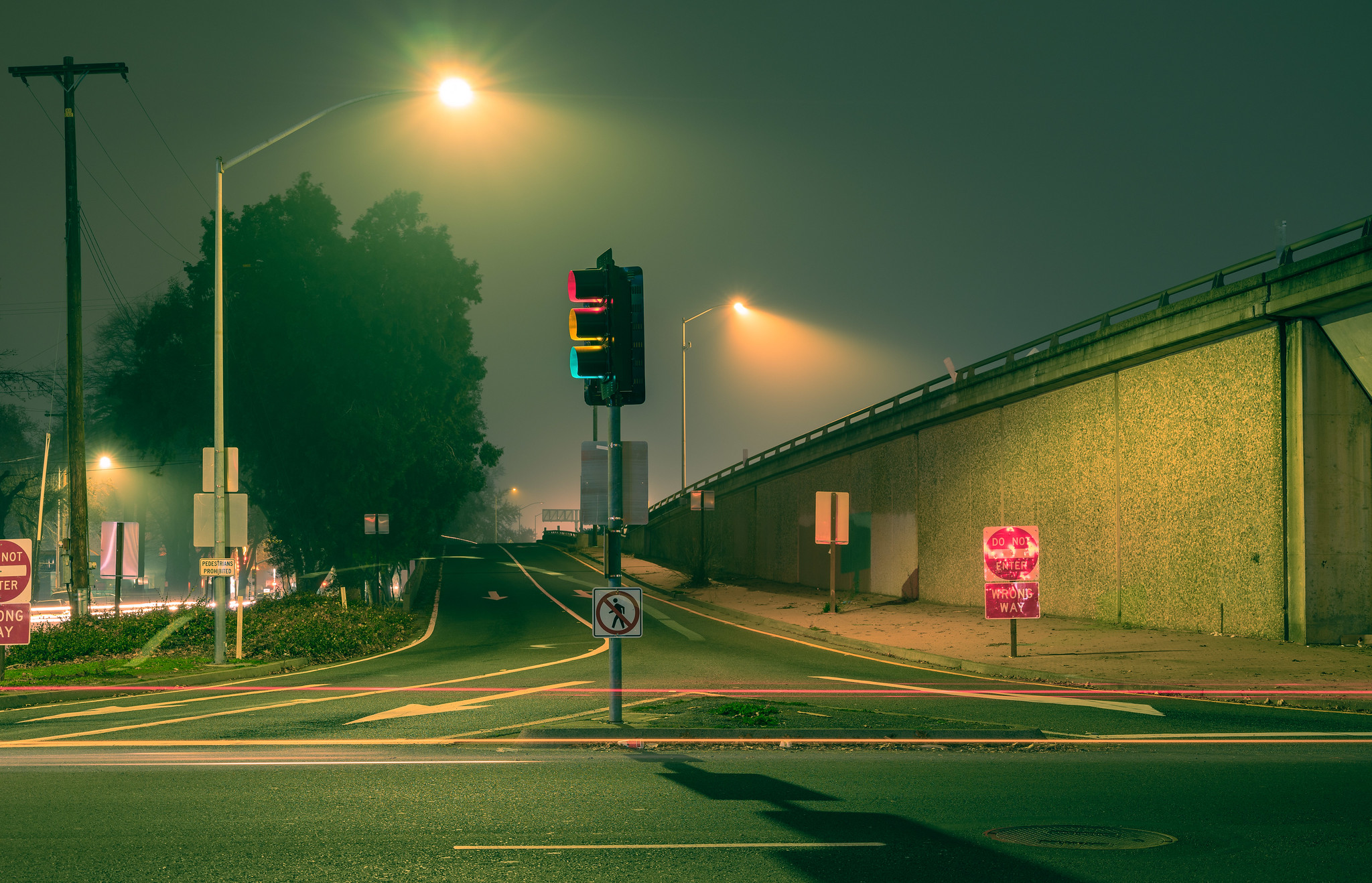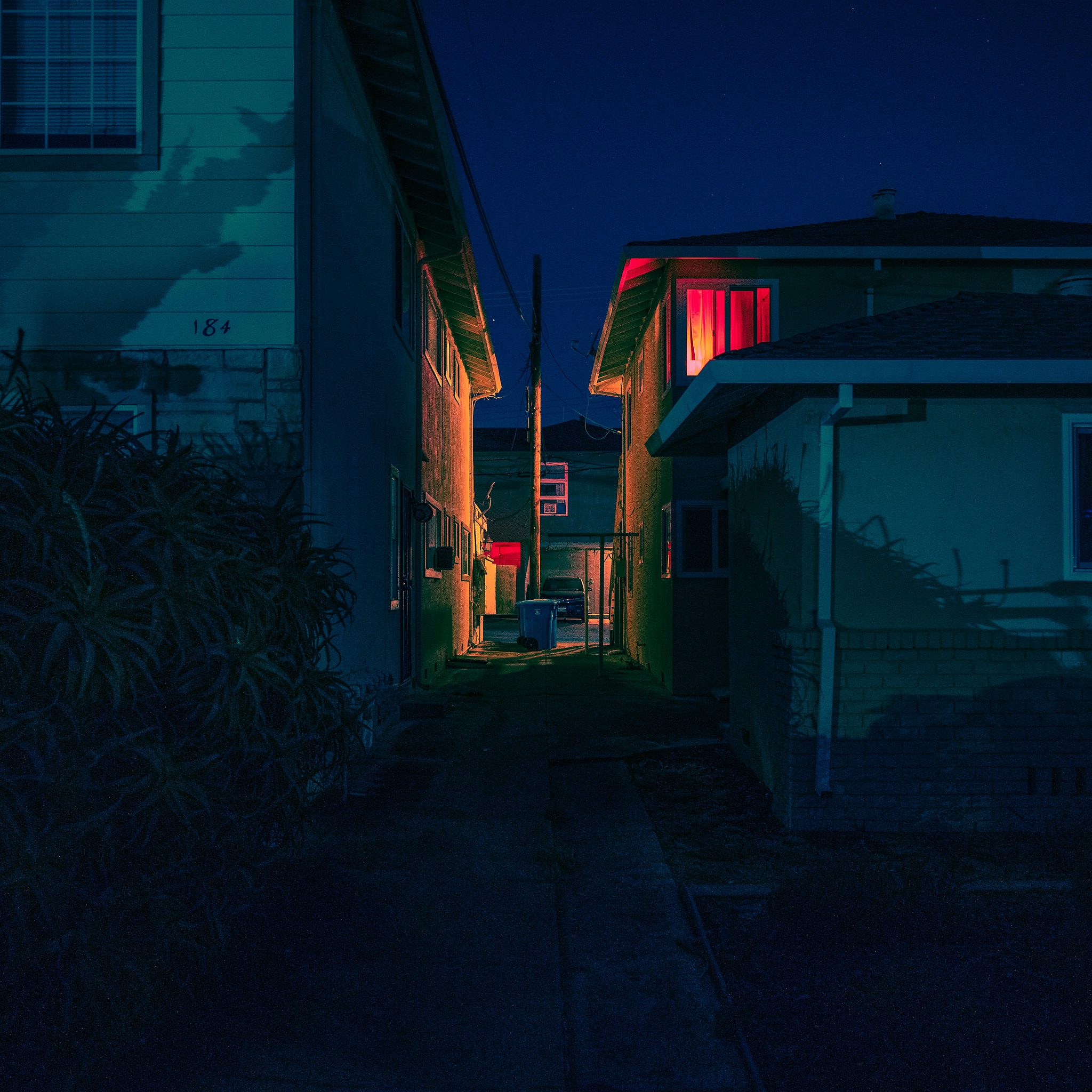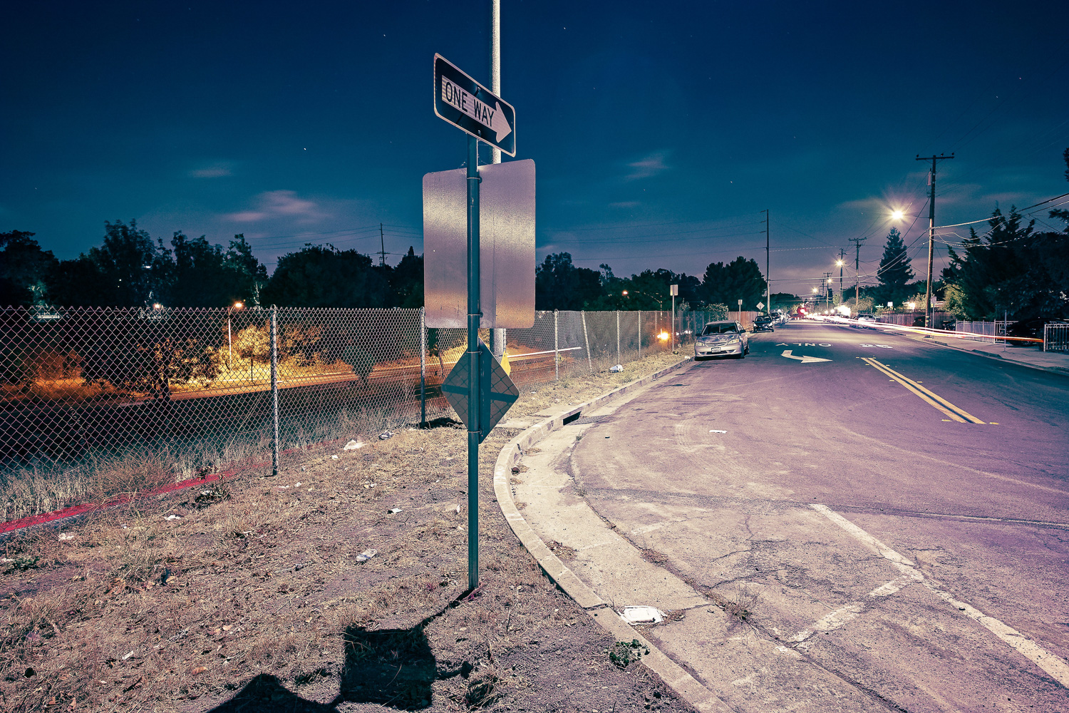 This album began simply: I wanted to create, but was responsible for a demanding infant I'd created and simply had no time left for photography during the daylight hours. So I did what I could, and left the house at night, making photos while walking around my neighborhood. Soon, I'd exhausted the local environs, and started driving to scenes more remote. And what has emerged, without quite knowing where I was going before I got there, are the following images – exaggerated colors and shadows made bright, all exploring the tranquility of the city at night.