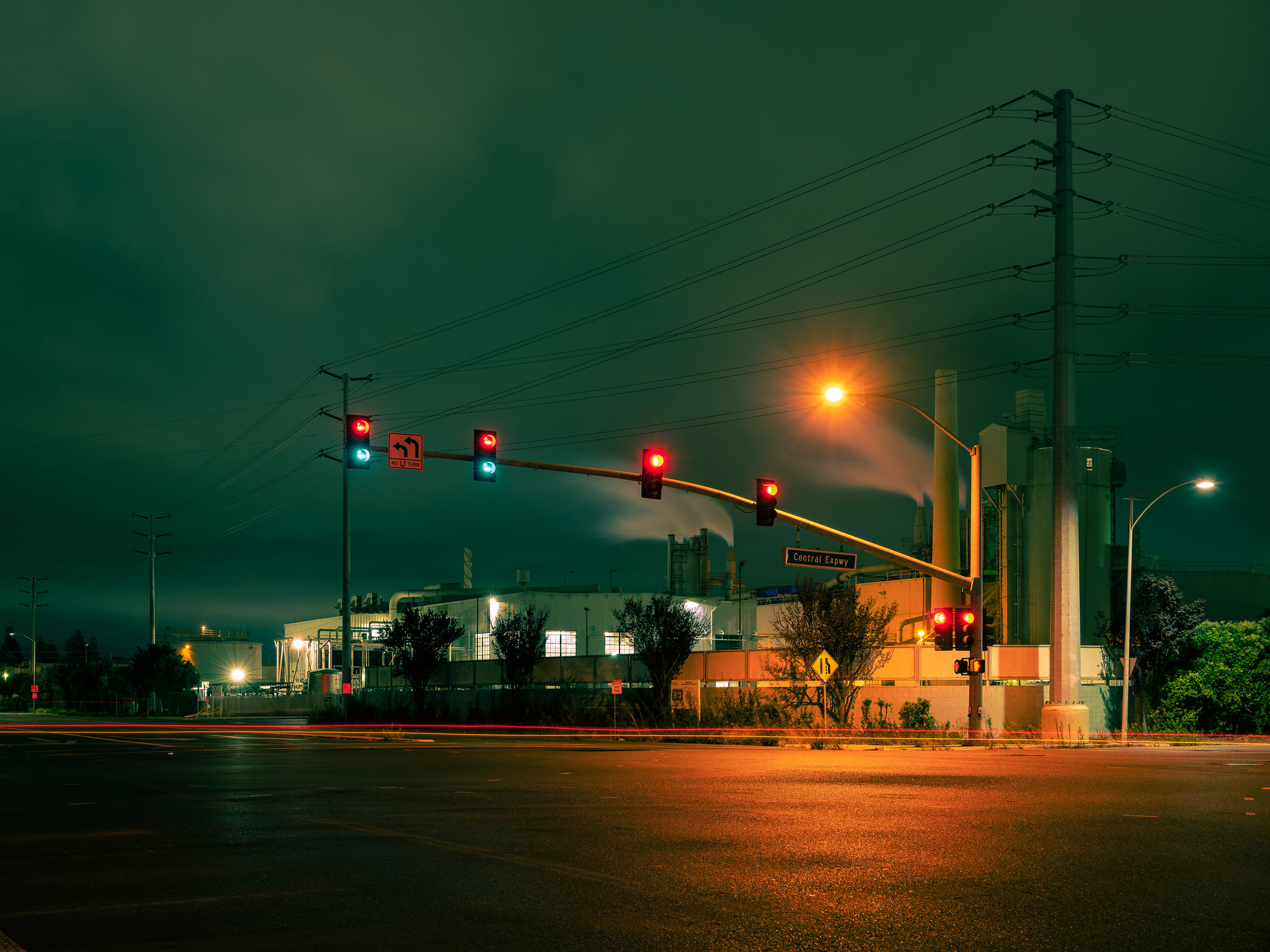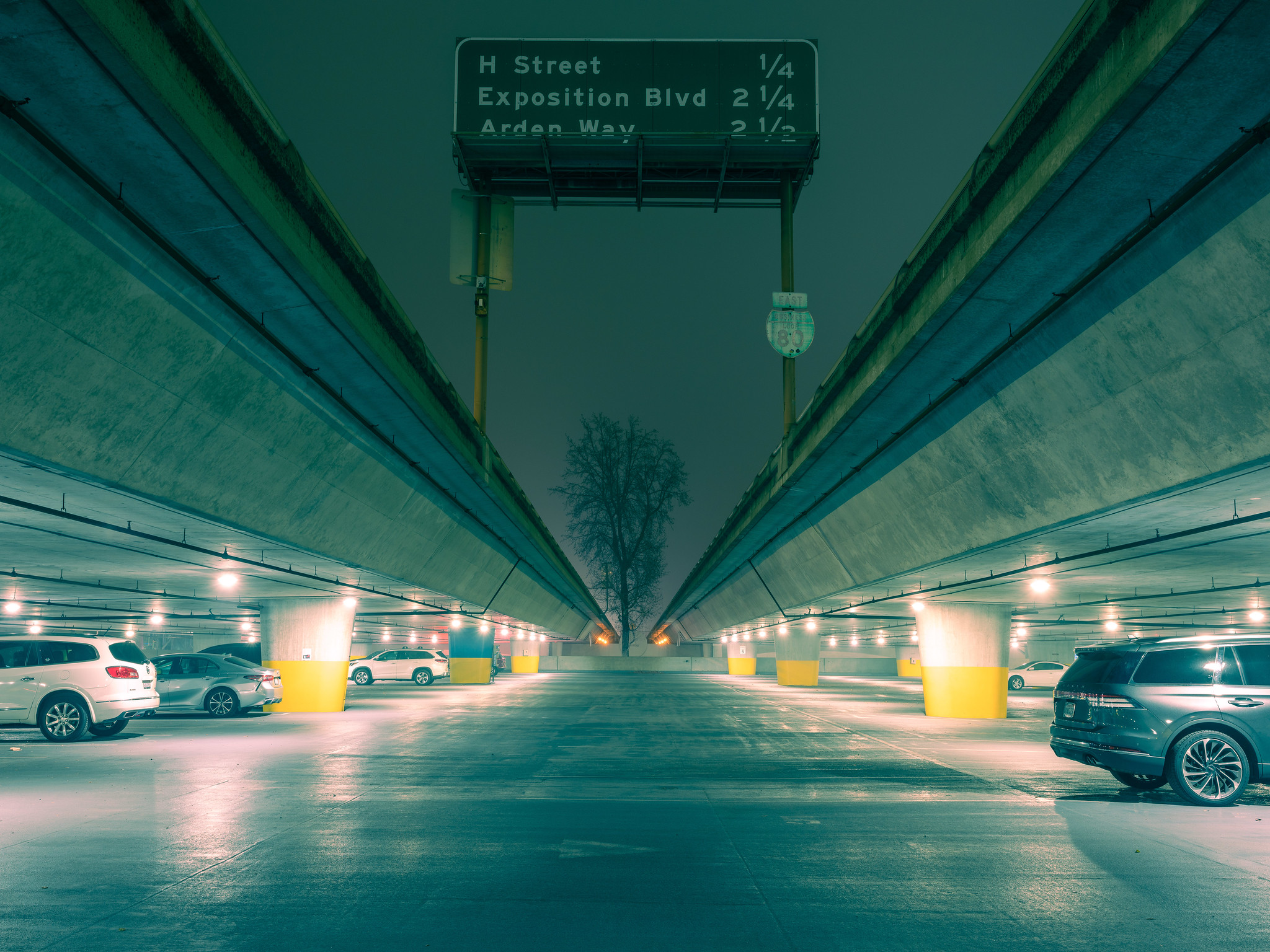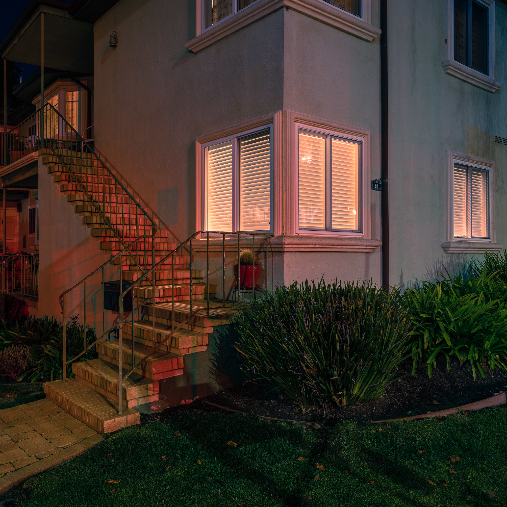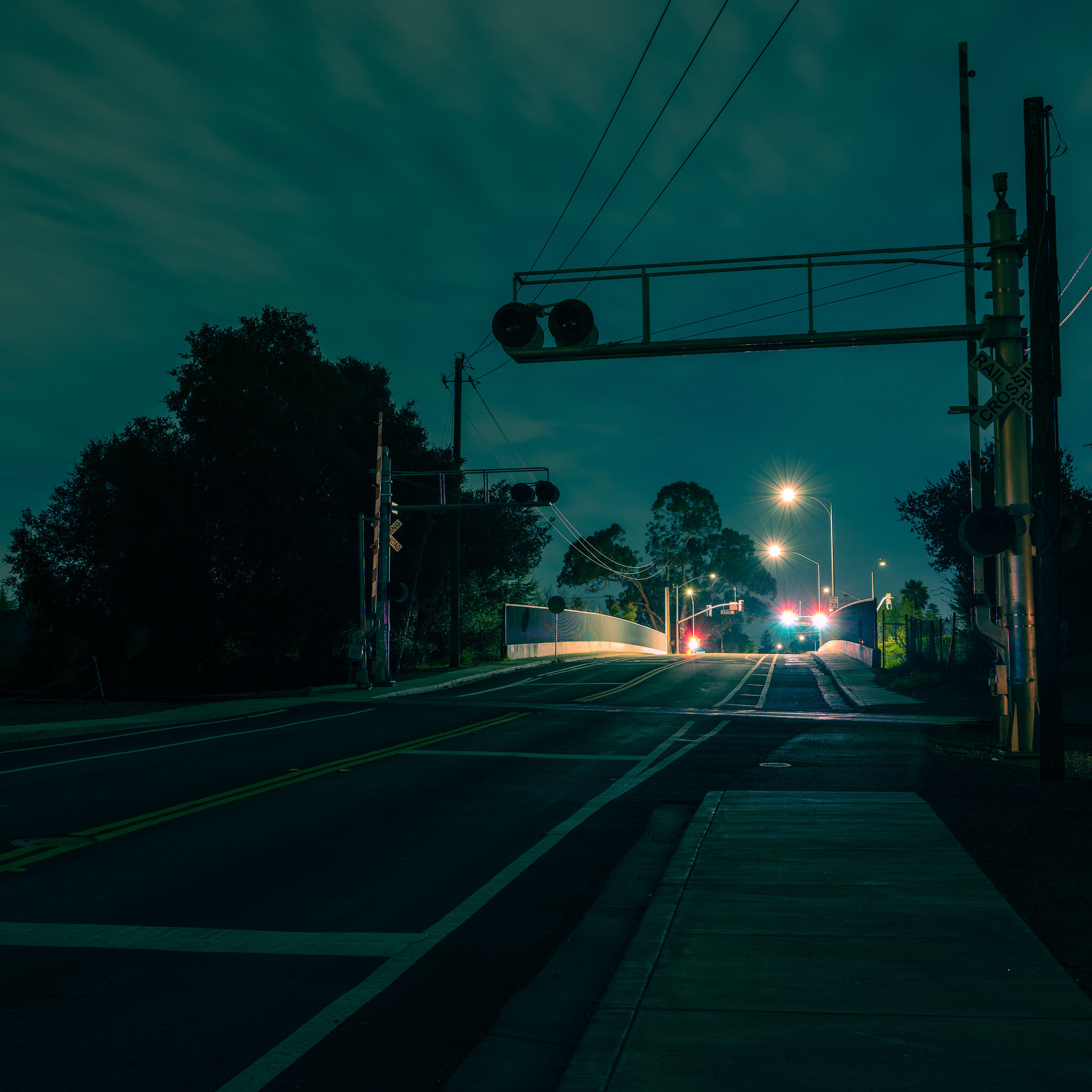 This album began simply: I wanted to create, but was responsible for a demanding infant I'd created and simply had no time left for photography during the daylight hours. So I did what I could, and left the house at night, making photos while walking around my neighborhood. Soon, I'd exhausted the local environs, and started driving to scenes more remote. And what has emerged, without quite knowing where I was going before I got there, are the following images – exaggerated colors and shadows made bright, all exploring the tranquility of the city at night.