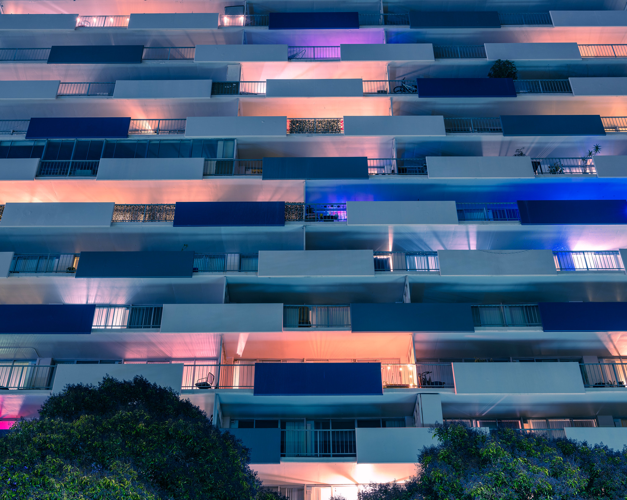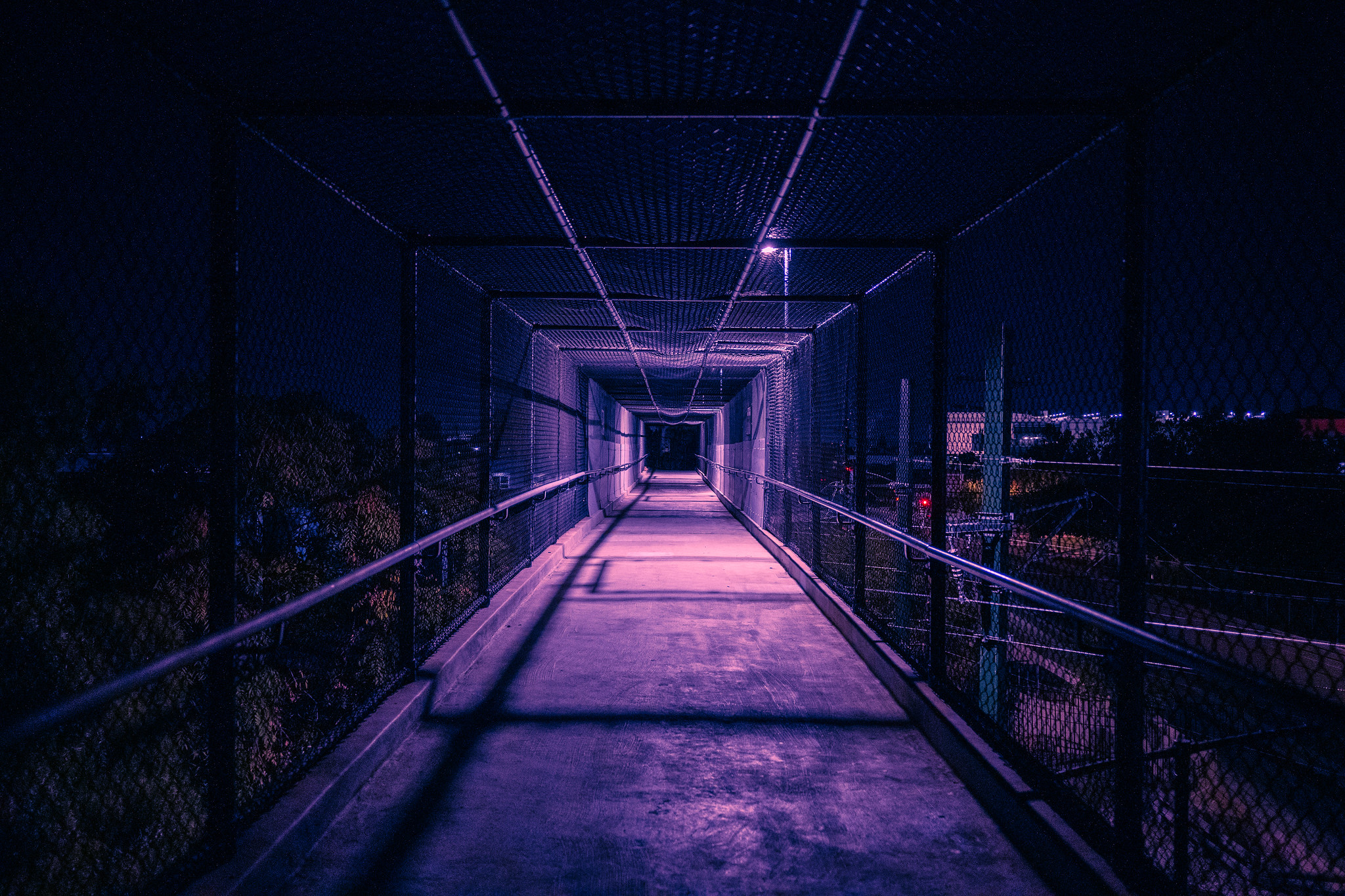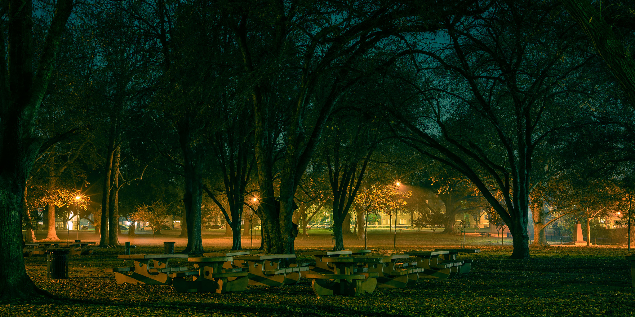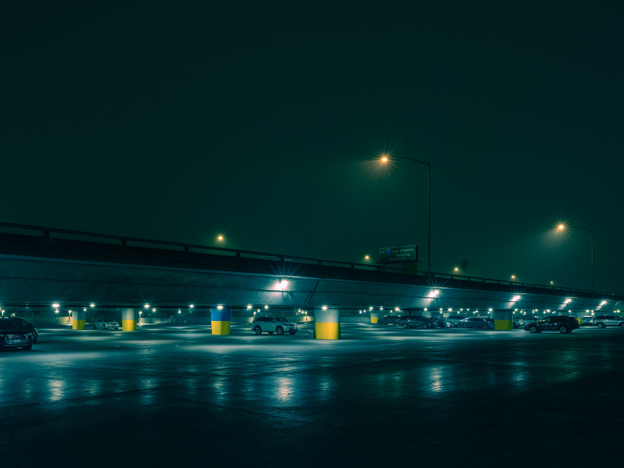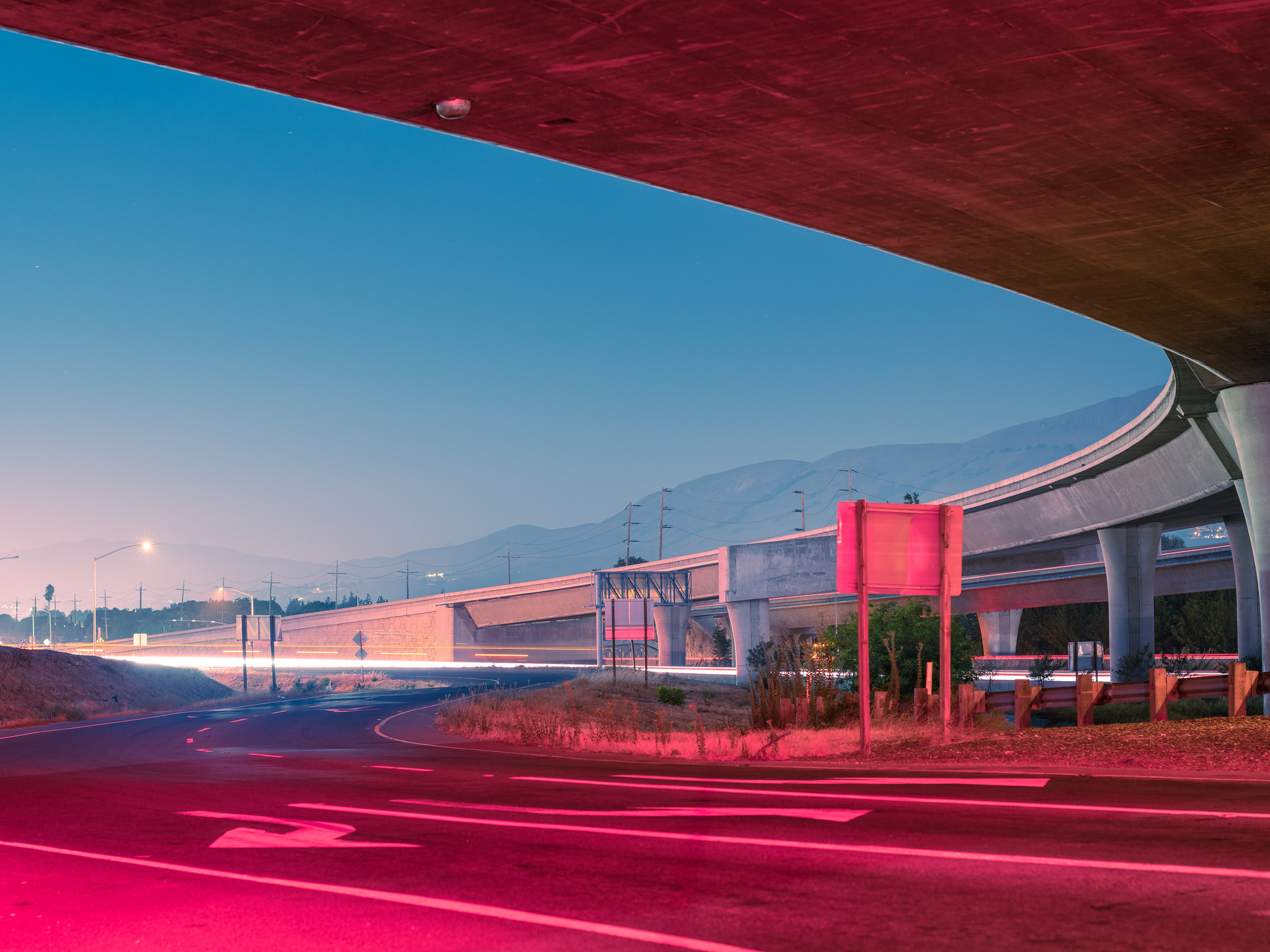 This album began simply: I wanted to create, but was responsible for a demanding infant I'd created and simply had no time left for photography during the daylight hours. So I did what I could, and left the house at night, making photos while walking around my neighborhood. Soon, I'd exhausted the local environs, and started driving to scenes more remote. And what has emerged, without quite knowing where I was going before I got there, are the following images – exaggerated colors and shadows made bright, all exploring the tranquility of the city at night.
